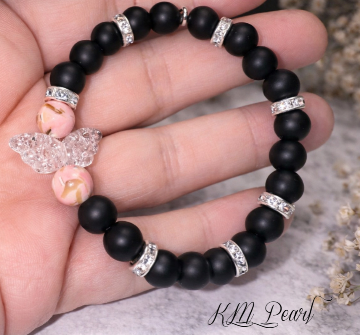 39. Onyx hegyikristály-howlit angyal védelem karkötő 8mm 17cm